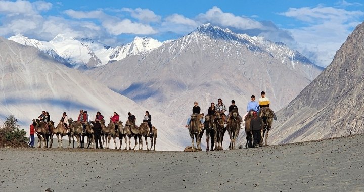 We drive through the Nubra Valley, famous for its sand dunes and the unique double-humped Bactrian camels, rarely found in the Himalayas. Here, you can enjoy a camel ride against the stunning backdrop of snow-capped peaks. Continue your journey to the world-renowned Pangong Lake, one of the highest saltwater lakes in the world, stretching 134 km with its shimmering blue waters straddling the India-China border.