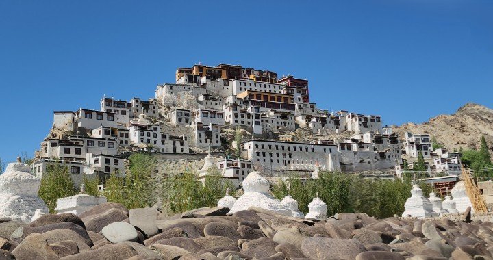We continue to Thiksey Monastery, a magnificent 12-storey complex resembling the Potala Palace in Lhasa. It houses numerous stupas, statues, and thangkas, including the impressive Maitreya Buddha Statue, which is 15 metres (49 feet) high, covering two floors of the monastery.