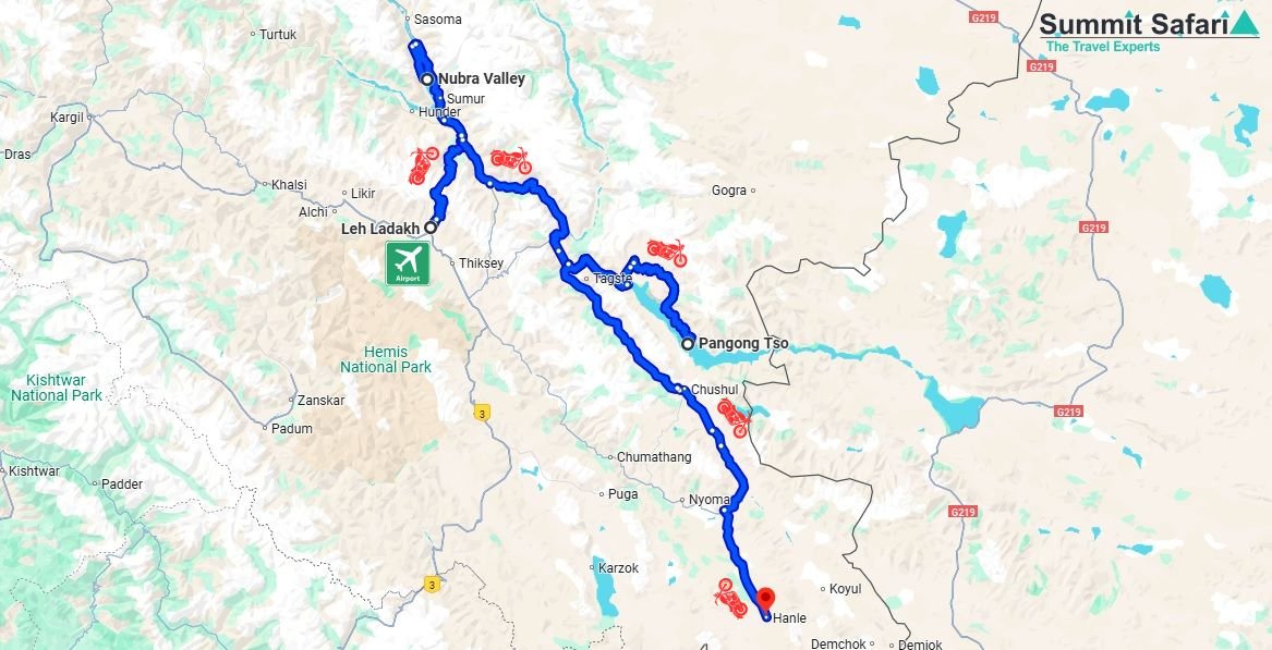 Place Wise Itinerary : Leh (2 Nights) Nubra (2 Nights) Pangong Lake (1 Night) Hanle (2 Nights) Leh (1 Night)