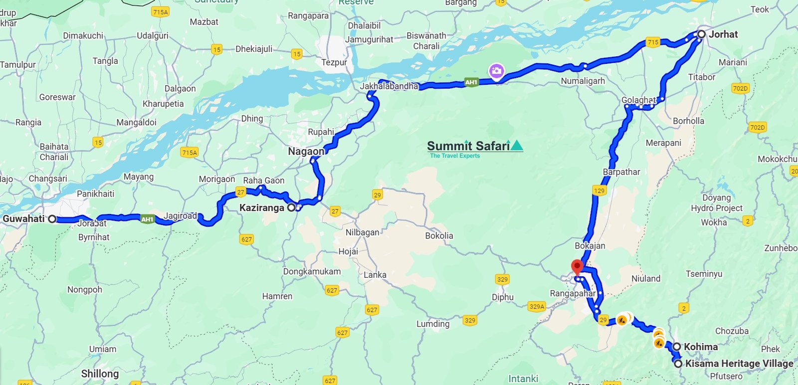 Place Wise Itinerary : New Delhi (1 Night on arrival) > Guwahati (1 Night) > Kaziranga National Park (2 Nights) > Jorhat (2 Nights) > Kohima (2 Nights) > Dimapur (1 Night) and fly back to New Delhi (1 Night at the end)