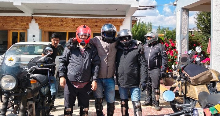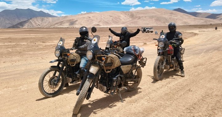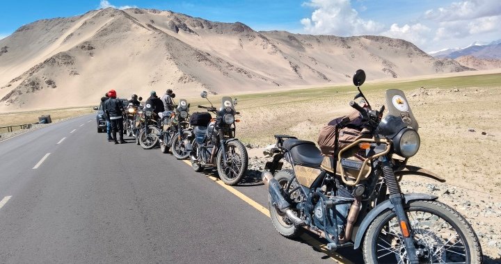 Your journey through Ladakh will be on Royal Enfield motorbikes (or similar), carefully prepared for high-altitude terrain. Basic riding gear including helmets is provided, and participants are encouraged to bring their personal protective equipment for added safety and comfort. An oxygen cylinder and first aid kit are available in the support vehicle to handle high-altitude situations.